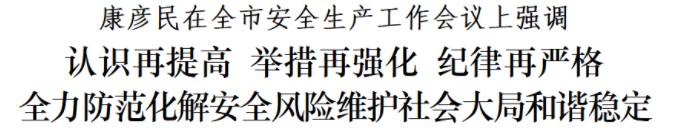 會(huì)議指出,做好安全生產(chǎn)工作、營(yíng)造安全穩(wěn)定的社會(huì)環(huán)境,是壓倒一切的政治任務(wù),是必須扛起的政治責(zé)任。各級(jí)各部門(mén)要做到思想認(rèn)識(shí)再提高,始終堅(jiān)持人民至上、生命至上,全面貫徹“疫情要防住、經(jīng)濟(jì)要穩(wěn)住、發(fā)展要安全”重要要求,進(jìn)一步增強(qiáng)抓好安全生產(chǎn)工作的責(zé)任感緊迫感,以嚴(yán)管嚴(yán)防的高壓態(tài)勢(shì),深挖風(fēng)險(xiǎn)隱患、堵塞安全漏洞,確保萬(wàn)無(wú)一失。