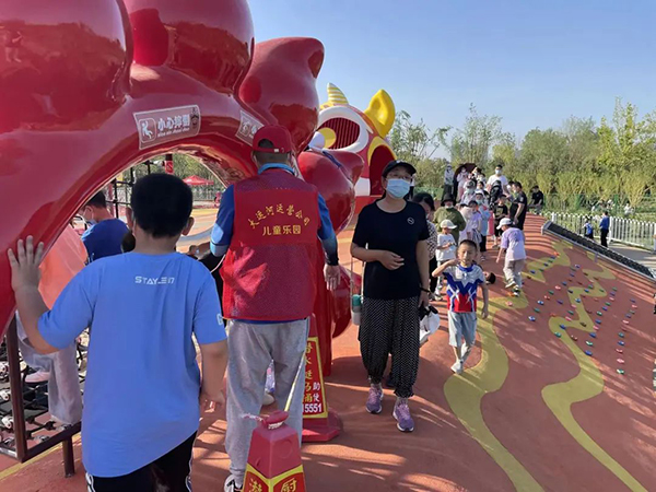 5月21日,百獅園內(nèi)兒童樂園開始試運營,青年先鋒隊盡銳出戰(zhàn),著手提升園內(nèi)設(shè)備安全游玩標準核定、標識標牌內(nèi)容優(yōu)化、亮化改造等服務(wù)內(nèi)容,對園區(qū)進行限流管理,嚴格遵循兩碼查驗、體溫測量、“一米線”等防疫要求,組織游客安全有序入園。截至6月15日,日均客流量已達1000人次。