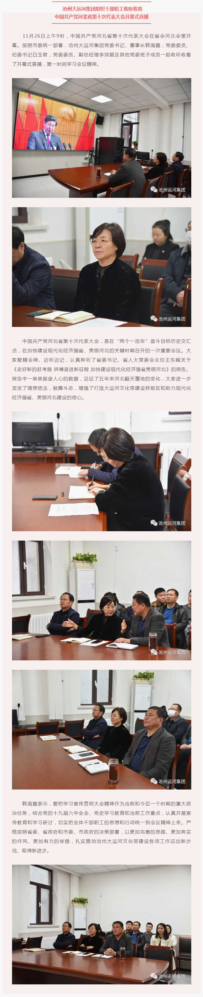 滄州大運(yùn)河集團(tuán)組織干部職工收聽(tīng)收看中國(guó)共產(chǎn)黨河北省第十次代表大會(huì)開(kāi)幕式直播