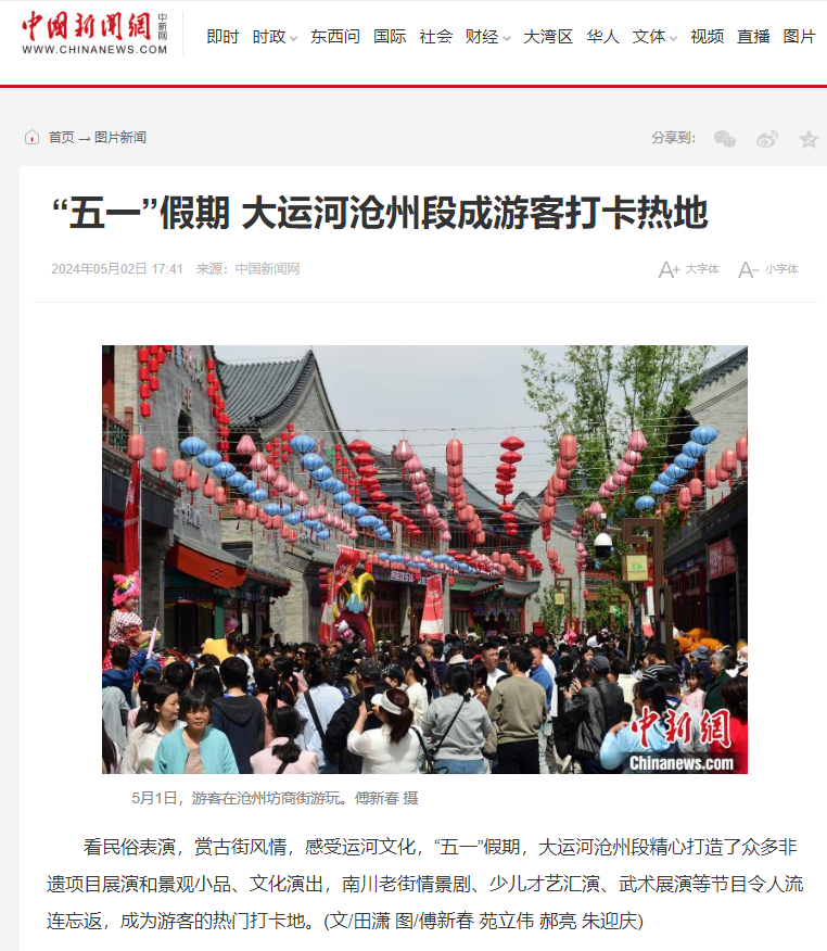 助力滄州躋身全國(guó)“五一”最受游客追捧的
