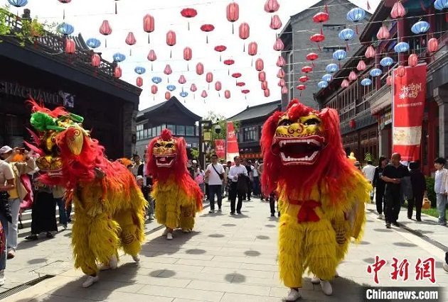 5月1日,滄州坊商街進(jìn)行非遺項目滄州獅舞表演。傅新春 攝