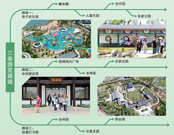 沿著園區(qū)小路蜿蜒前行,13個城市展園的園林盛景依次呈現(xiàn):“雄風秀雅·文武滄州”的滄趣園、“冬奧交響,盛世張垣”的張家口園、“窗前影、萬象新”的唐山園、“一代名相、清風梅苑”的邢臺園……13個城市展園用各自特有的元素,向世人演繹美麗河北,述說燕趙風韻。