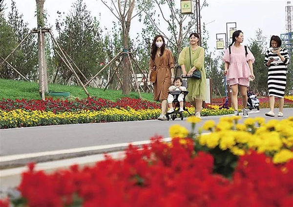 在核心展示區(qū),3米高的綠雕鮮花造型,成為“熱門打卡地”,吸引了不少游客拍照留念。工作人員介紹,這一造型以雙心依偎連接的形態(tài),傳達(dá)出對(duì)美好生活的深切期待和向往。