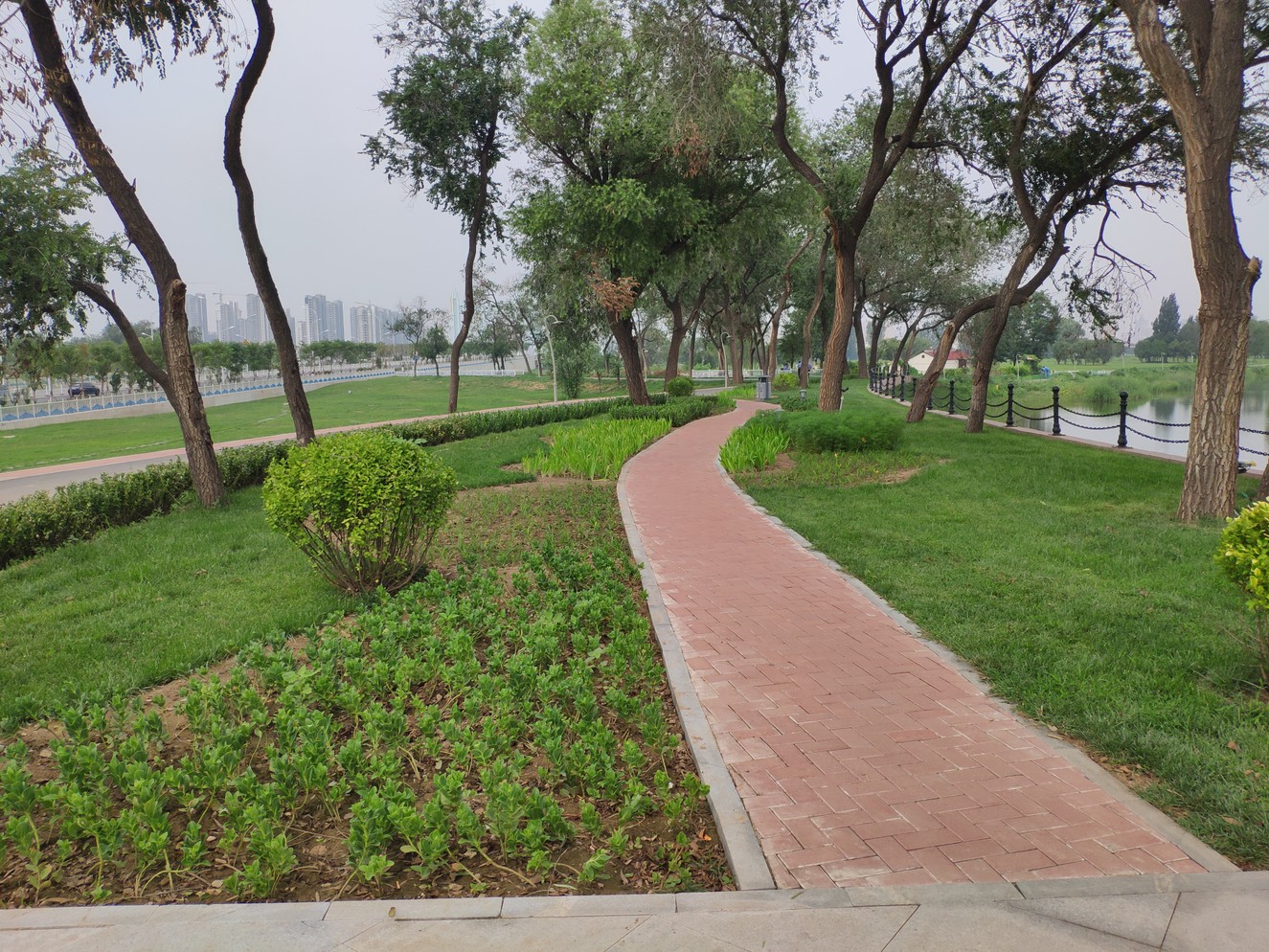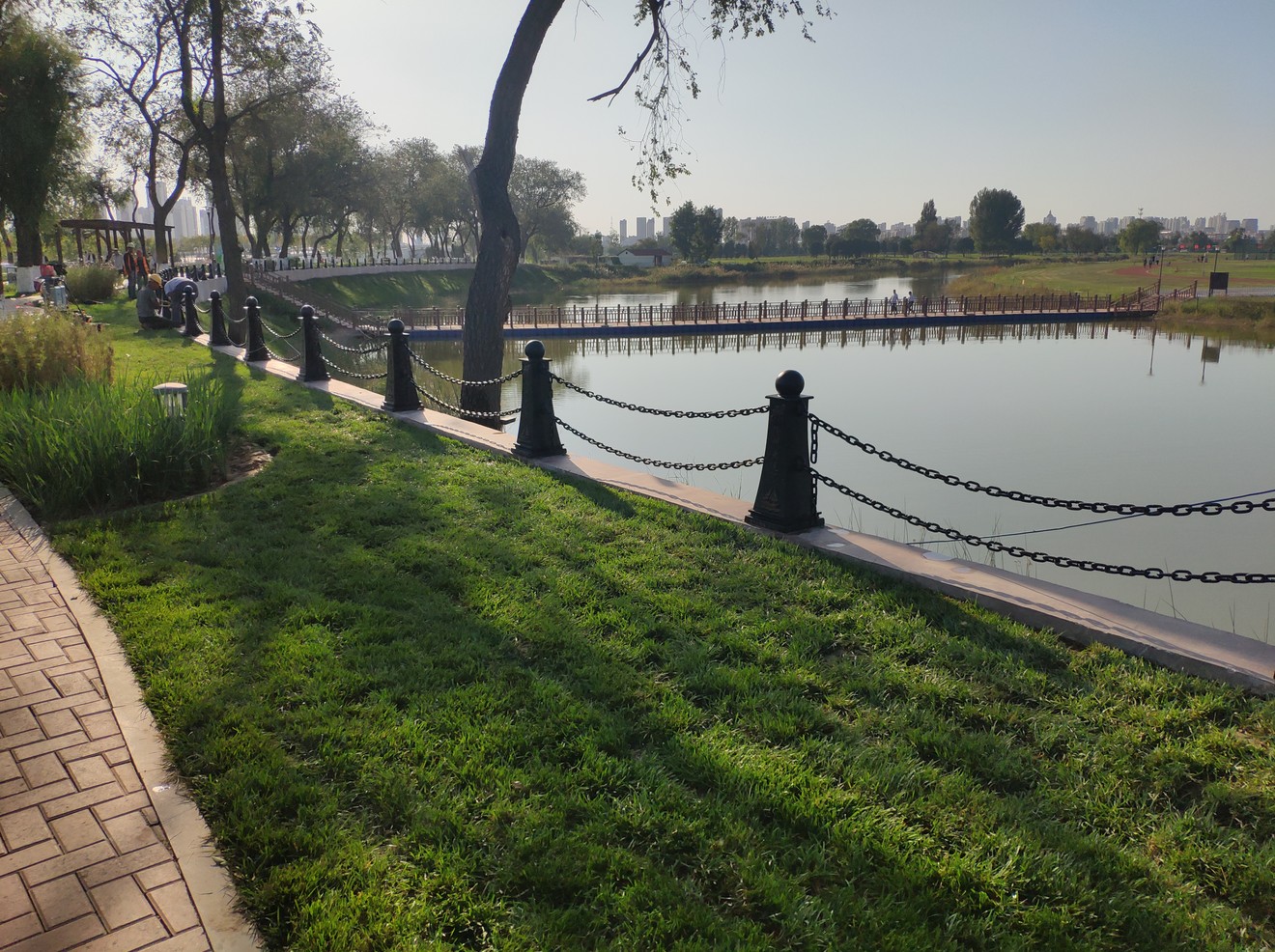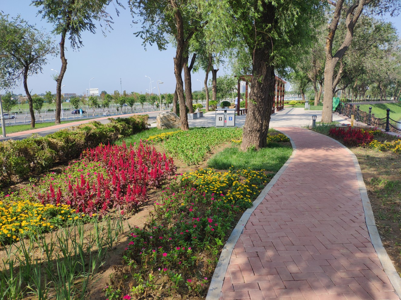 清池大道西側(cè)原王希魯引水閘泵房及周圍配套建筑拆除后,為了實(shí)現(xiàn)“即拆即綠”的效果,在該區(qū)域進(jìn)行游園建設(shè)。游園總占地面積約6000平方米,主要建設(shè)內(nèi)容包括園路廣場(chǎng)、綠化種植、休閑設(shè)施、亮化工程等。為提高市民休閑游憩質(zhì)量,便于運(yùn)河?xùn)|岸游人到達(dá)項(xiàng)目核心區(qū),按照市委市政府主要領(lǐng)導(dǎo)的要求,在清池大道西側(cè)游園設(shè)置一座臨時(shí)浮橋,浮橋全長(zhǎng)60米,寬度4米。清池大道西側(cè)游園及臨時(shí)浮橋已于2019年8月建設(shè)完成并投入使用。